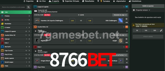 O 8766bet oferece uma grande seleção de opções de apostas em e-sports com probabilidades competitivas